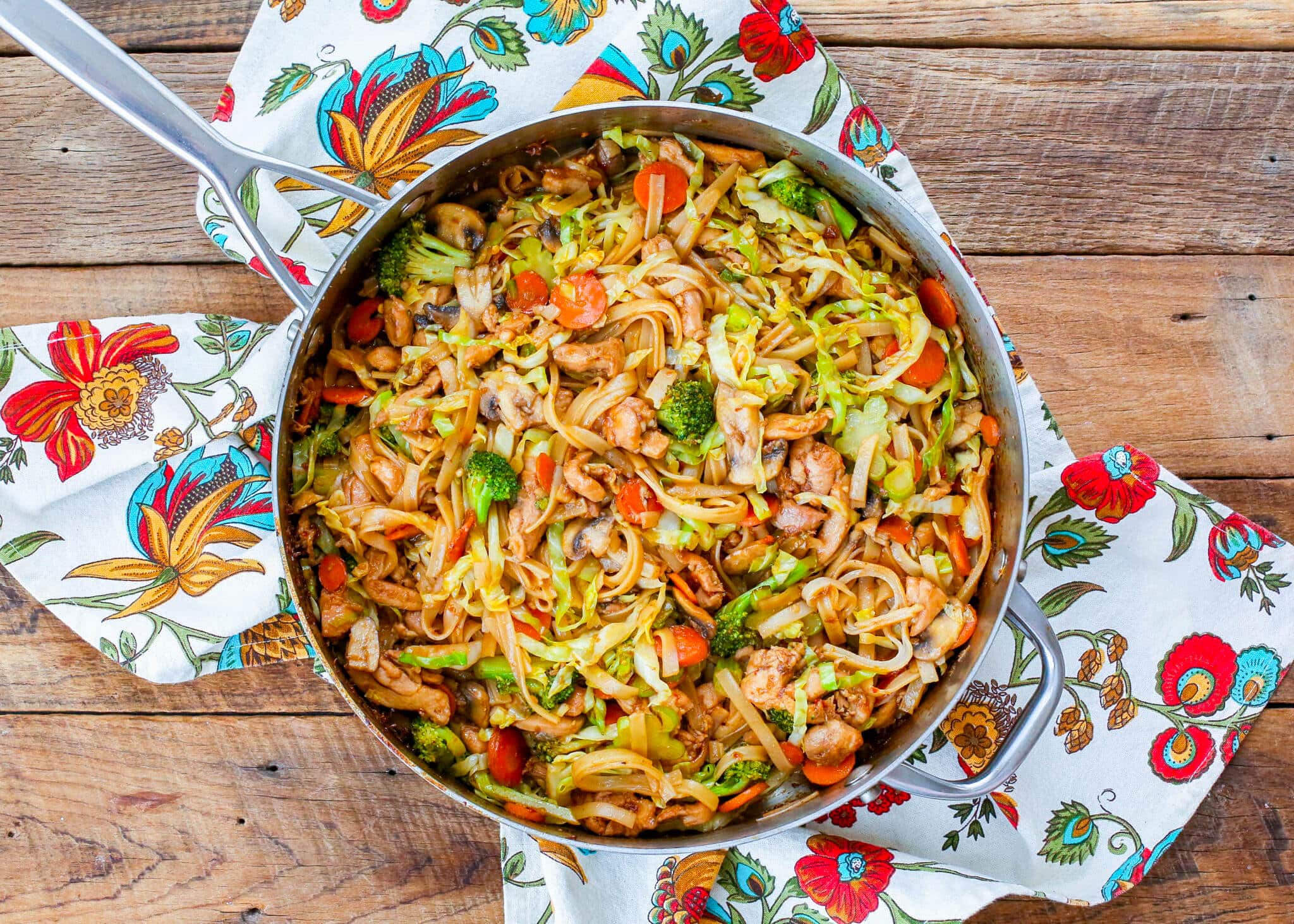 A quick and flavorful stir fry noodle recipe with vegetables and chicken.