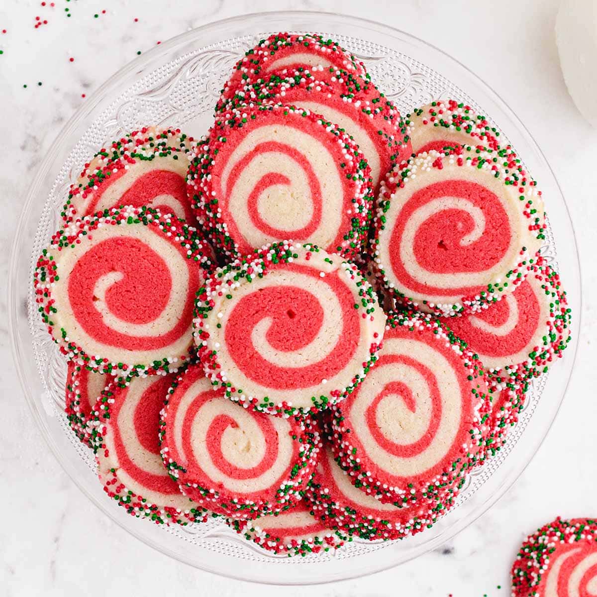 Delicious festive sugar cookies with colorful swirls, perfect for holiday celebrations!
