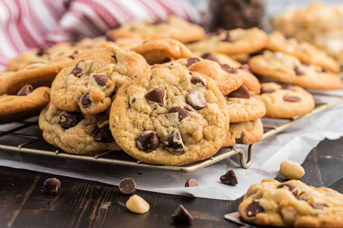- Drop by large tablespoon onto a parchment paper-lined baking sheet. Press a few of the reserved chocolate chips on top. Bake in a 375°F oven for 10-12 minutes. Cool on wire rack.